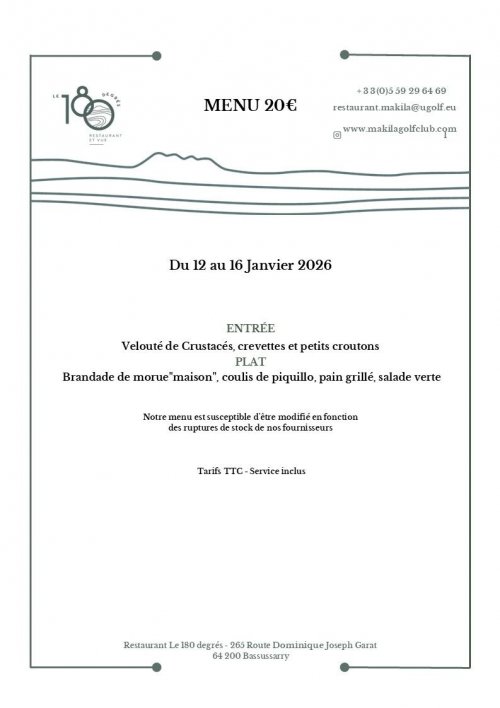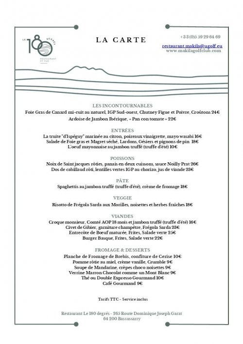 Contacter le 180 degrés : 05-59-29-64-69 ou restaurant.makila@ugolf.eu